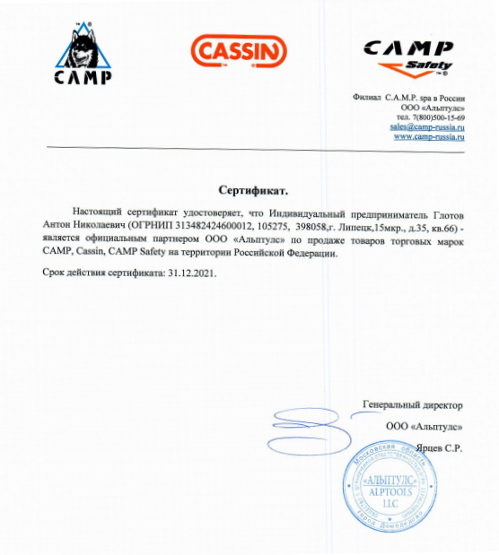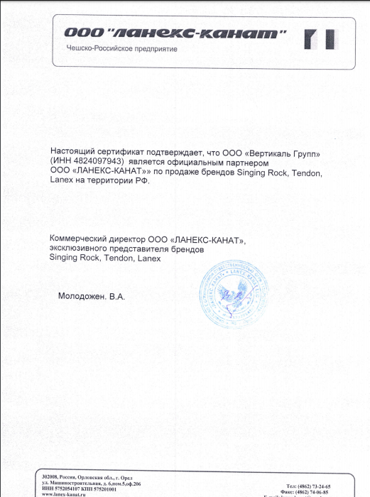 Сертификат дилера Tendon, Singing Rock, Lanex